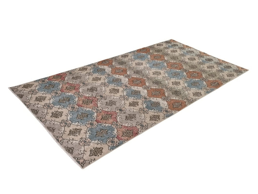 Bohemian Art Deco Oushak Rug, Checked Vintage Carpet Rug, 4x8 Rug, TURKİSH RUG, Handmade Area Rug, Entryway rug, Turkey rug, 8871