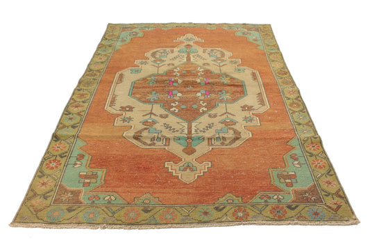 Bohemian Decor Area Carpet Rug, Turkish Rug Muted, Oushak Rug Anatolia, Vintage Rug Wool ,Rug 4x7, Handmade Rug,Living room Rug, 5603