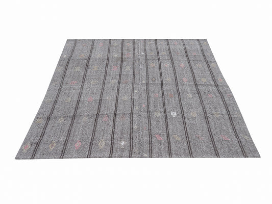 Turkish Handmade Kilim Rug, Vintage Black Striped Kilim Rug, Area Flat Weave Kilim Rug,Neutral Antique Rug, Gray Rug, Kilim Rug 6x7, 12203