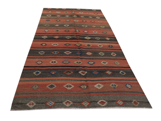 Turkish Kilim, Vintage Kilim, Kilim Rug 6x10, Handmade Flat Weave Striped Kilim Rug, Eclectic Kilim Rug, Bedroom Rug, Rug Kilim, 12909