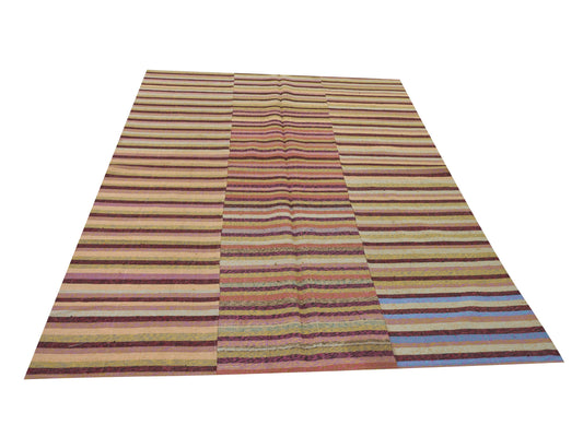 Turkish Kilim, Vintage Kilim, Handmade Flat Weave Striped Kilim Rug, Area Kilim Rug, Bohemian Kilim Rug, Office Rug, Kilim Rug 7x8, 12210