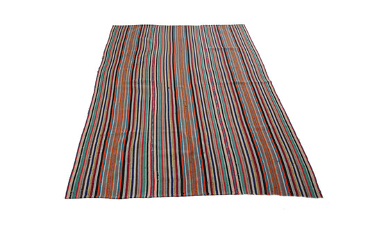 Vintage Area Kilim Rug, Handmade Flat Weave Kilim Rug, Turkish Striped Kilim Rug, Farmhouse Decor, Bedroom Rug, Kilim Rug 6x8, 12977