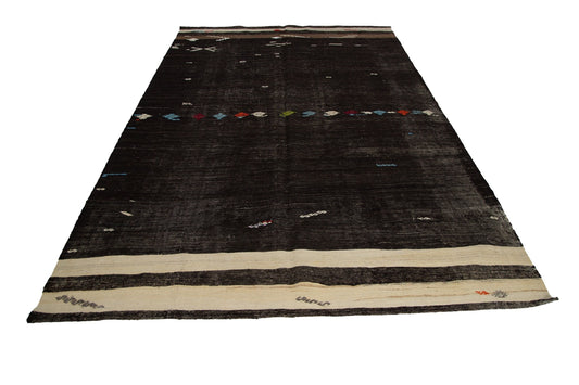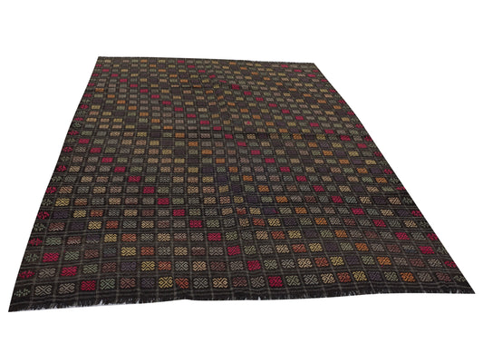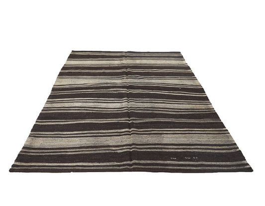 Vintage Black Plaid Kilim Rug, Turkish Handmade Kilim Rug, Area Striped Kilim Rug, Farmhouse Decor, Office Rug, Kilim Rug 5x6, 12891