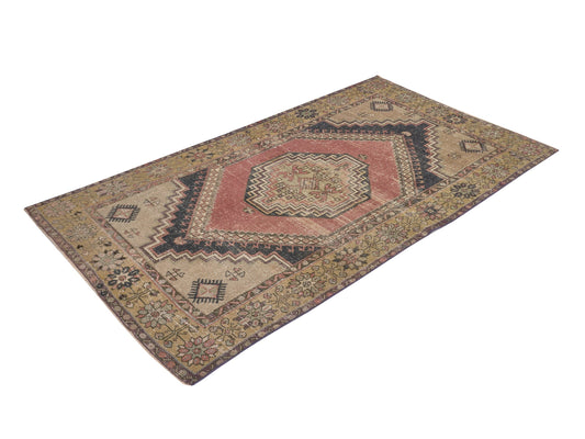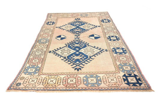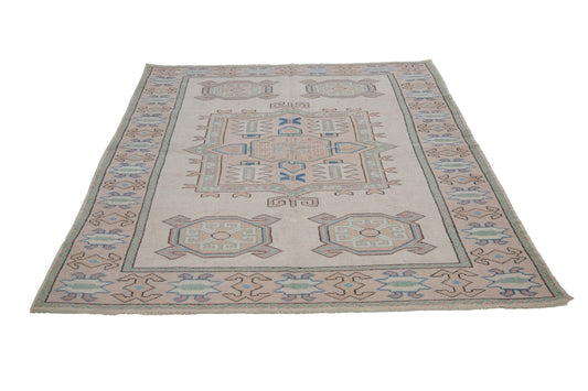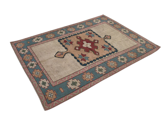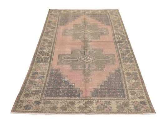 Faded Turkish Vintage Rug, Carpet rug, Small Rug 4x7, Muted Oushak Rug, Bedroom rug, Office Rug, Beige rug, Eclectic decor,Handmade rug,9623