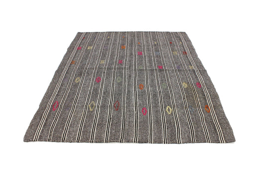 Kilim Rug, Turkish Kilim Rug 5x7, Vintage Kilim Rug, Area Kilim Rug, Kilim Rug Gray, Handmade Rug, Living Room Rug, Striped Kilim Rug, 4737