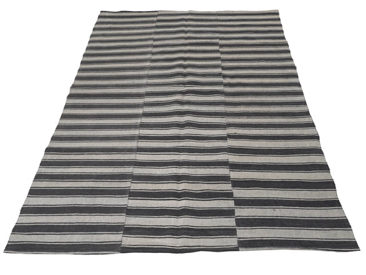Handmade Kilim Rug, Vintage Black Striped Kilim Rug, Turkish Area Kilim Rug, Office Rug, Neutral Rug, Farmhouse Decor, Kilim Rug 6x10, 12917