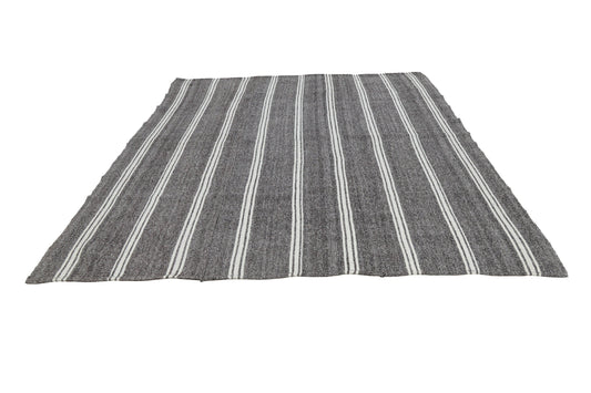 Turkish Striped Kilim Rug, Vintage Gray Kilim Rug, Flat Weave Rug, Coastal Decor, Handmade Antique Rug,Living Room Rug, Rug Kilim 8x11, 8103
