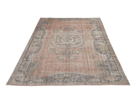 Faded Distressed Salmon Pink Turkish rug, Oushak rug, Vintage rug, Worn rug, Neutral rug 5x7, Living room rug, Nursery rug ,Anatolia,8030