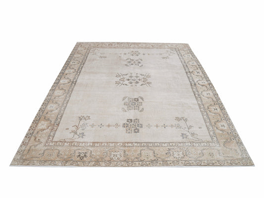 Unique Oushak Rug, Turkish Rug, Vintage rug, Neutral rug, Area rug 6x9, Handmade rug, Wool rug, Anatolia rug,Living room rug,Turkey rug,9579