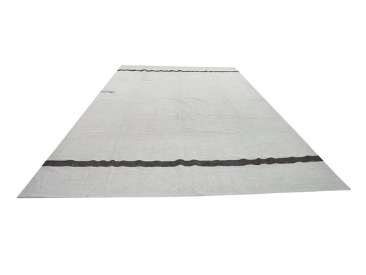 Turkish Vintage Kilim Rug, Handmade Black Striped Kilim Rug, Area Kilim Rug, Oversize Rug, Large Rug, White Hemp Rug, Kilim Rug 9x11, 12274