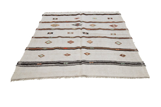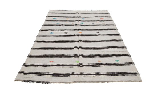 Turkish kilim, Vintage kilim, 5x7 Kilim rug, Hemp rug ,White kilim rug, Hemp kilim rug,Area rug, Black White rug, 5818
