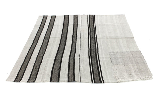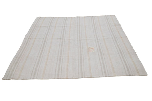 Black and White Striped Kilim Rug,Hemp Kilim Rug,Square Kilim Rug, ,Unique Rug,Organic Rug,Neutral
