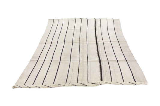 5x7 Kilim rug striped, Turkish rug organic, Hemp rug white neutral, Vintage kilim rug, Hemp kilim rug, Living room, 6564