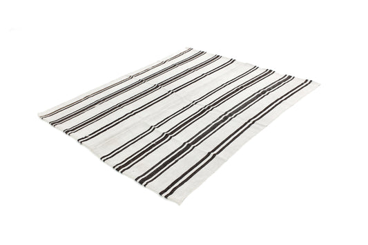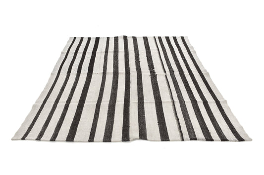 6x8 Black White Kilim Rug, Turkish Kilim Hemp, Vintage Kilim Striped, Turkish White Hemp Kilim Rug, Contemporary, Living Room, 5800